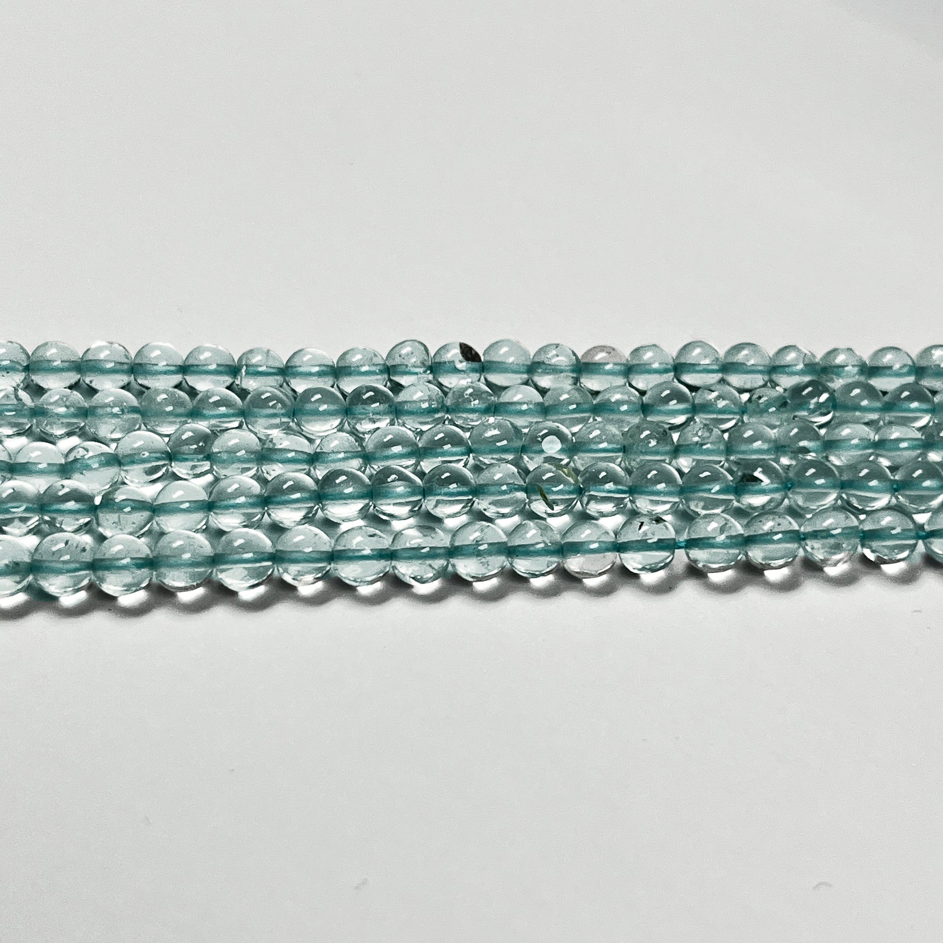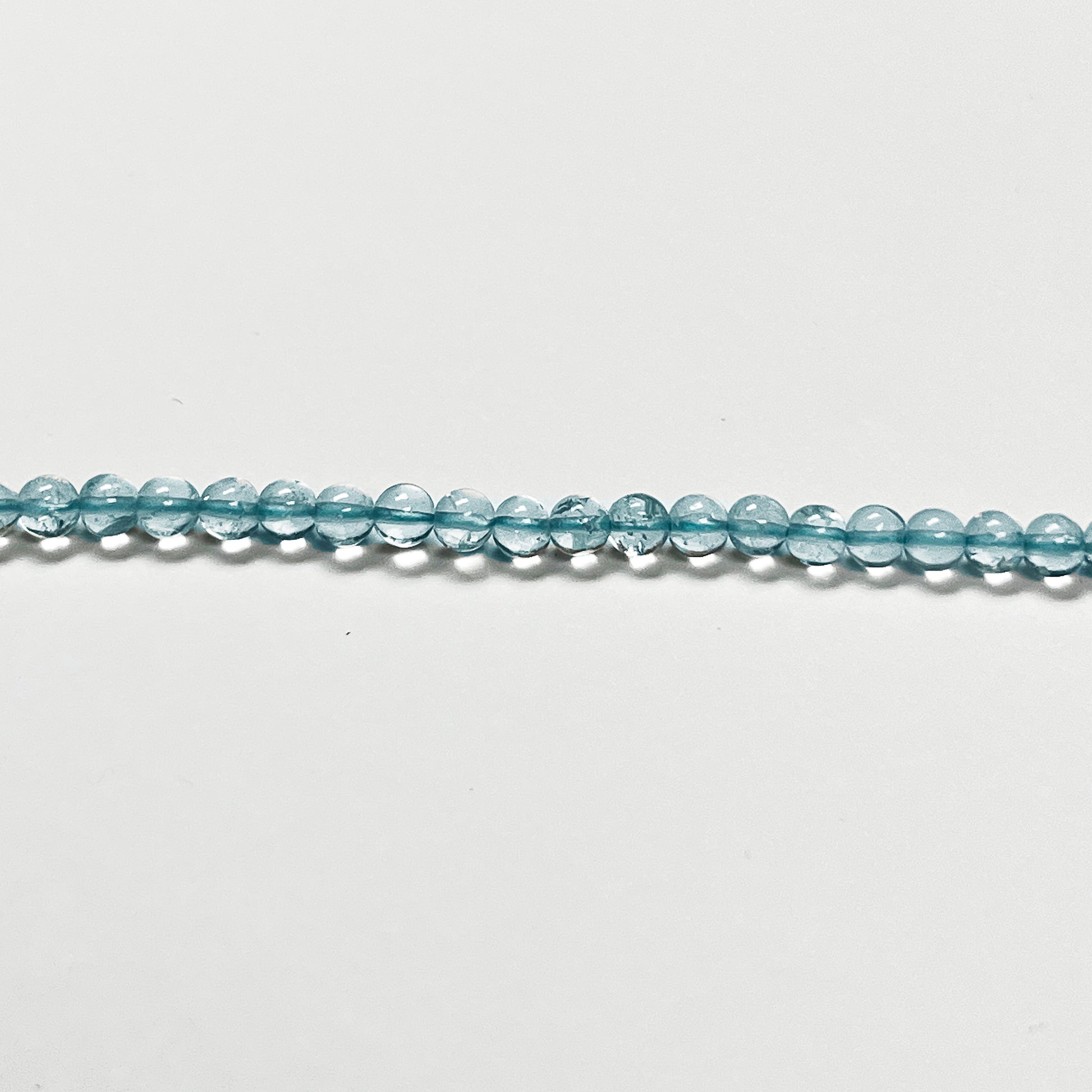 Natural Smooth Swiss Blue Topaz beads in a petite 2.5–2.9mm size, showcasing a bright, crisp blue hue with beautiful sparkle. Each 15" strand includes approximately 138–140 finely cut beads, perfect for delicate and detailed jewelry designs.